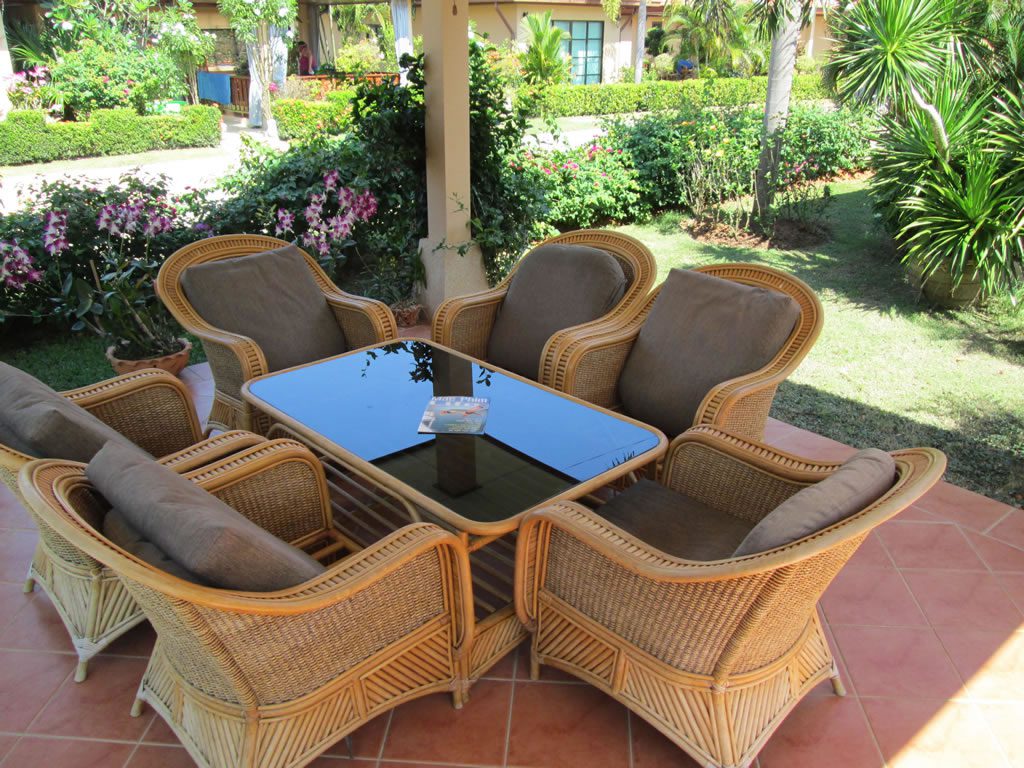 4 sovrum+ Detta vackra hus är perfekt beläget i Bali Residence. Trädgården är upphöjd och sprider en fridfull tillvaro med resten av huset. Perfekt för par eller familjer. Den stora bekväma soffan i salongen (terrass med tak) inbjuder till underbara tropiska kvällar. Huset är rymligt och smakfullt inrett. Kök och vardagsrum i öppen planlösning, ett sovrum med dubbelsäng och ett sovrum med två enkelsängar. Luftkonditionering i båda sovrummen. 2 rymliga badrum med handfat, dusch och toalett. Husområdet har en säsongsöppen restaurang, massageservice, motorcykeluthyrning och en stor pool. Sun4U:s servicekontor ligger i området och erbjuder städ- och tvättservice, turer och transporttjänster. Allt för din bekvämlighet!
