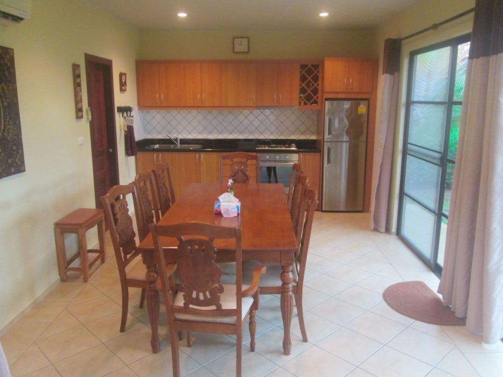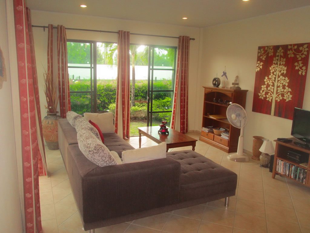 Hus att hyra i Mae Phim. Ett vackert hus med gott om plats! BR47 har ett bra läge i Bali Residence. 2 sovrum, 2 badrum och ett rymligt kök. Sala är omgivet av en vacker trädgård. Du kan verkligen njuta av både inomhus- och utomhuslivet! Bara en kort promenad till den stora barnvänliga poolen med den populära restaurangen. Ta med familjen och kom!
