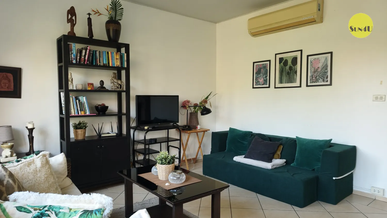 I vardagsrummet har ni Tv med inkopplad Appel-Tv, så du kan fortsätta titta på tex dina netflixserier, precis som hemma. Fiber finns i huset.